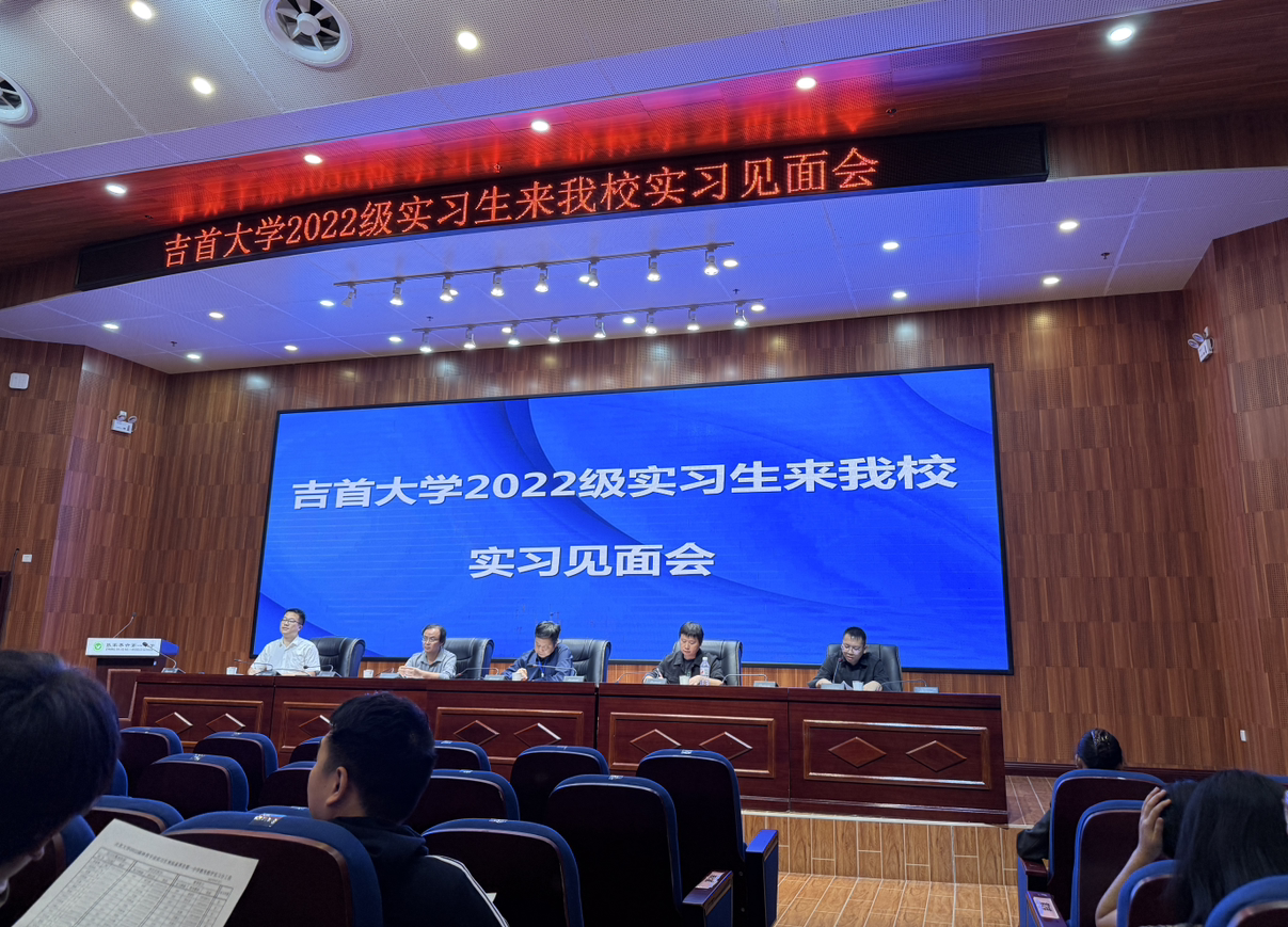 下午4点,实习见面会在图书馆多功能报告厅召开。张家界市第一中学校长唐勇,副校长姜治国、丁明,教务处主任庹得茂等校领导出席了本次会议,会议由副校长王愿主持。