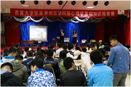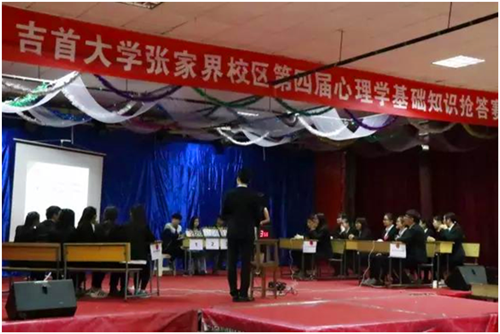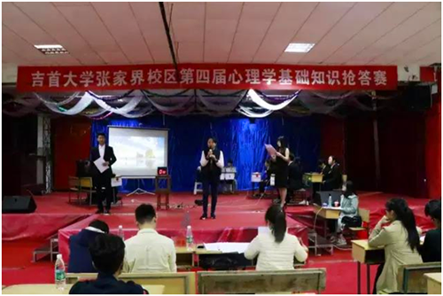 4月7日晚上7点,张家界校区于大学生活动中心隆重举行了第四届心理基础知识抢答赛总决赛。应邀担任此次活动的评委有国家二级心理咨询师舒文慧、国家二级心理咨询师张洁。