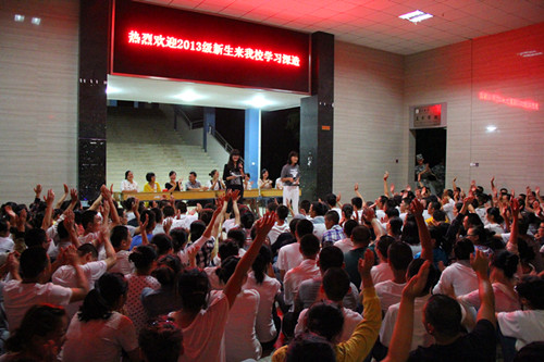 在2013年9月10日晚上7点半,在yl23455永利集团张家界校区第一教学楼大厅里,200多名yl23455永利集团2013级的新生陪着他们的大学老师过了一个不平凡的教师节,给老师们唱了歌,表达了祝福,也向广大教师同学们分享了他们人生过程中最美教师的故事,完成了他们在教师节向自己最尊敬老师的电话祝福。