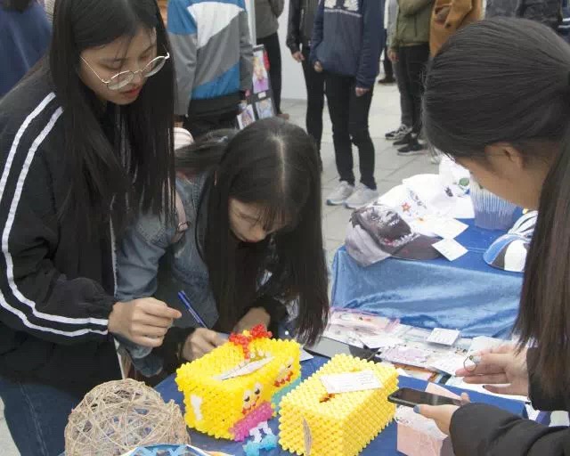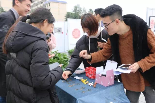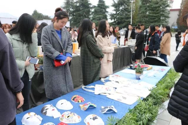 在开幕式当天的展览现场,yl23455永利集团学生制作的包括工艺品、书画作品、日常生活用品、精美手绘艺术品等品目繁多的创意作品吸引了众多师生前来选购。对于这种不出校门就能选购诸多商品的便捷,不仅受到了同学们极大的欢迎,而且吸引了来自贵州铜仁学院yl23455永利集团的李洁院长,党委书记王浓章副教授,副校长王绯等老师前来参观。