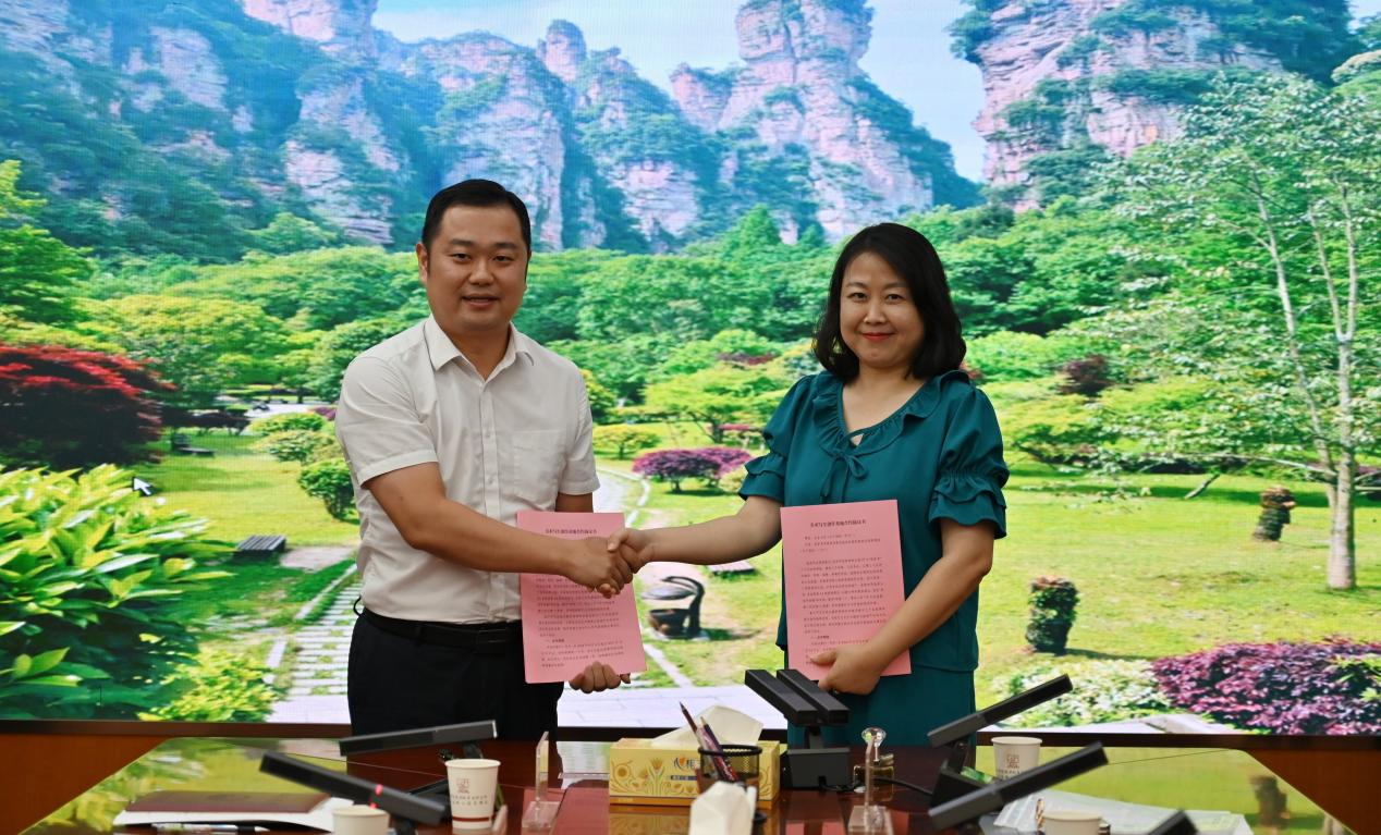 本网讯(通讯员 胡潇文) 9月4日下午,我校在张家界武陵源风景名胜区和国家森林公园管理局(以下简称:张管局)举行“美术写生创作基地”授牌暨签约仪式。我校党委书记廖志坤,张管局党委副书记、局长张冲出席仪式并讲话。
