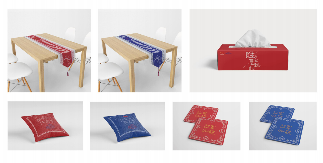 参赛作品“马桑树之恋”——马桑树儿搭灯台布艺套组,由我院李波荣、赵忠鼎老师指导,美术与设计工作室学生创作。作品巧妙的运用红军和土家阿妹的形象来代指贺敬斋和妻子戴桂香,结合土家蜡染、土家挑花技艺、桑植民歌融入《马桑树儿搭灯台》中,用马桑树和灯台树休戚与共的关系来诠释二人“钥匙不来锁不开”般忠贞不渝的爱情故事。