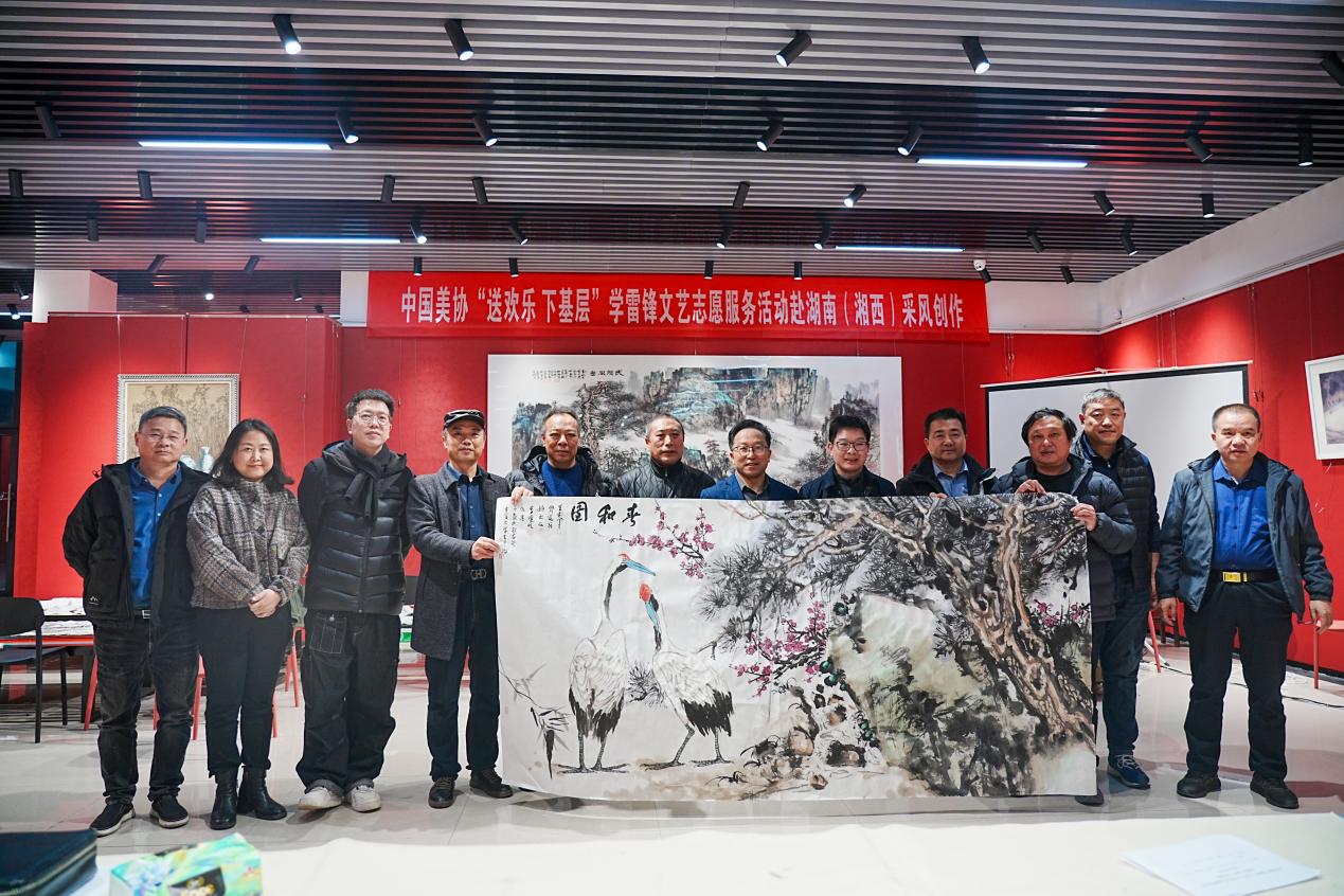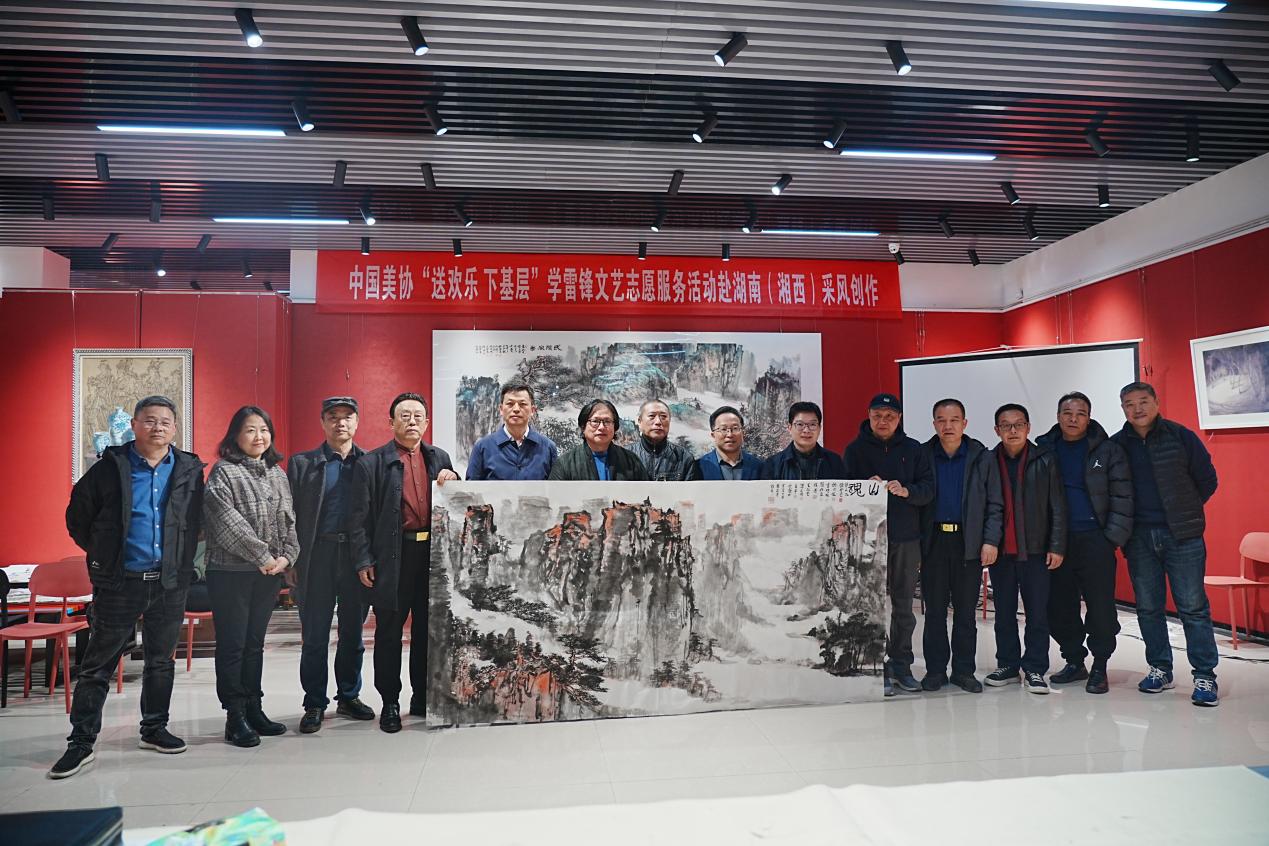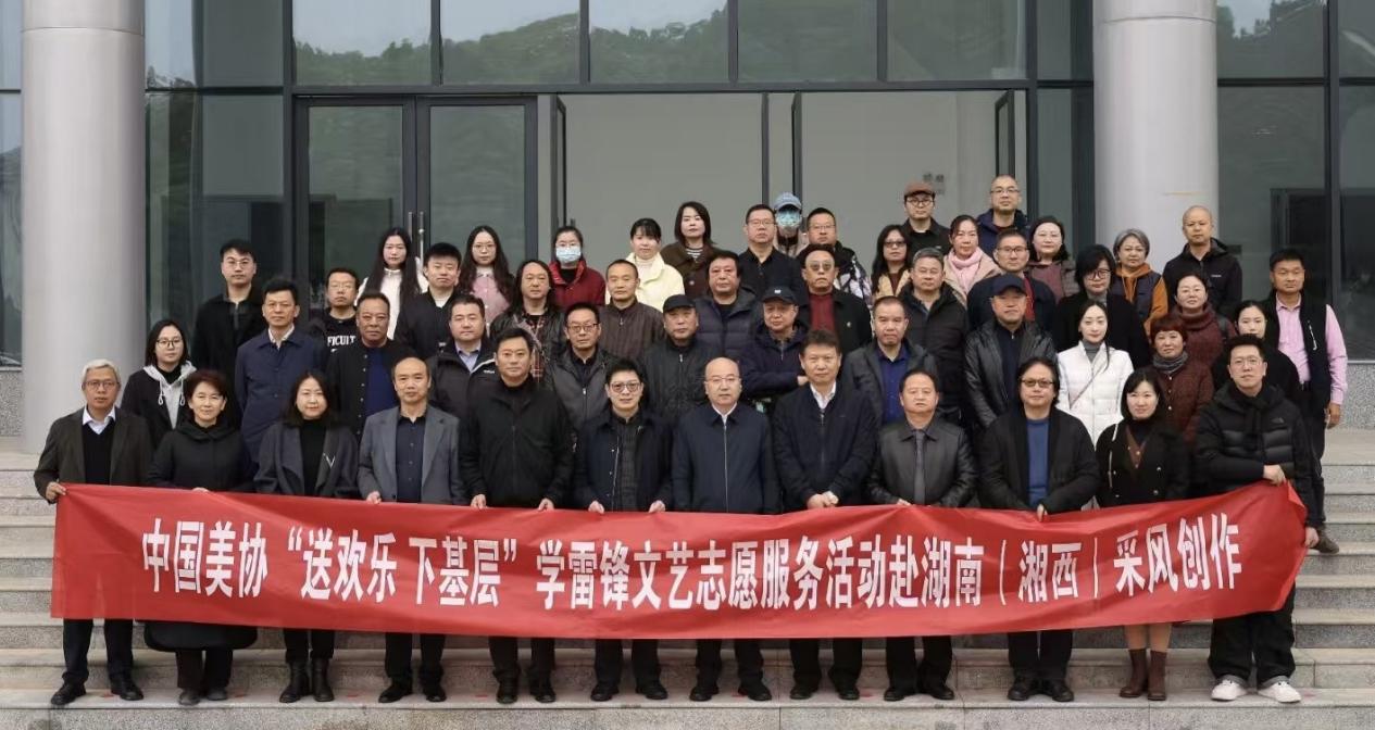 随后,在全体出席人员的共同见证下,中国美协“送欢乐 下基层”学雷锋文艺志愿服务活动赴湖南(湘西)采风创作活动正式启动,现场各位领导和嘉宾在yl23455永利集团美育空间前坪进行了合影留恋。
