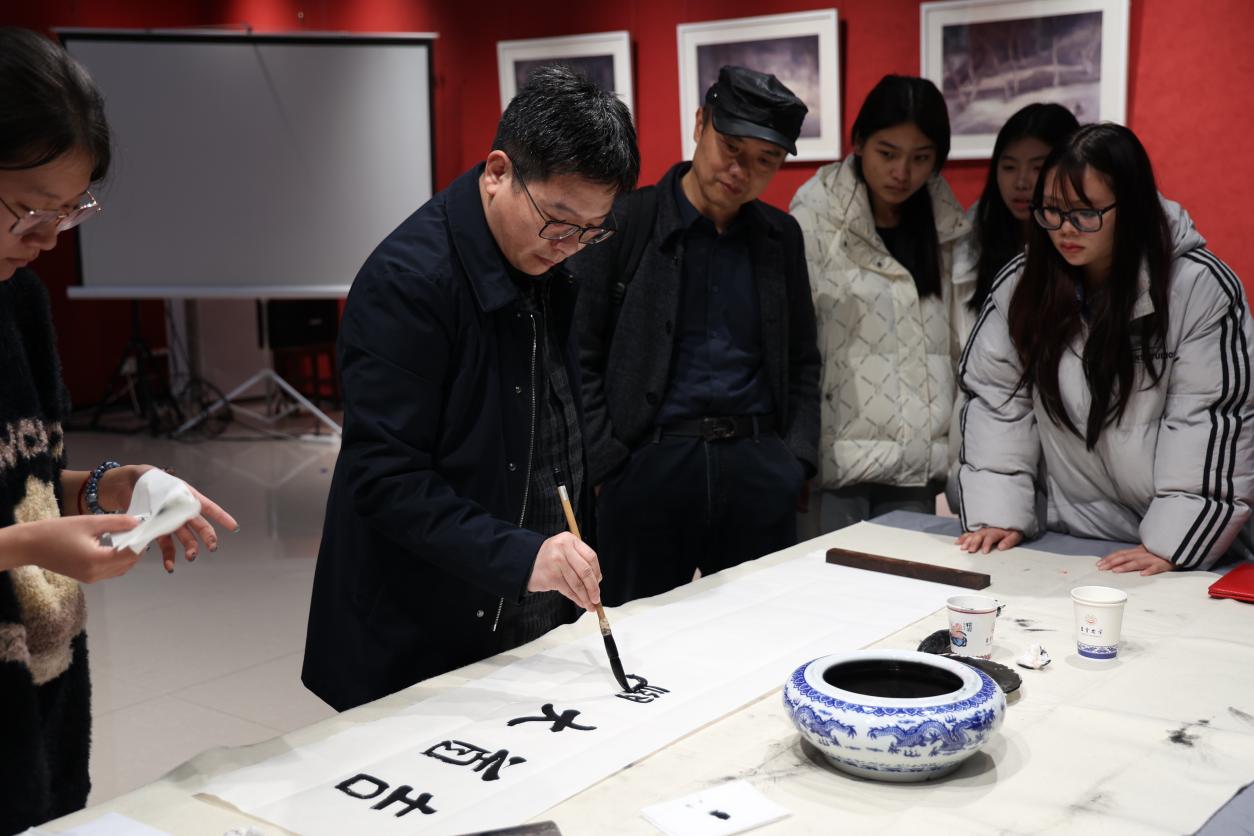 此外,美术家们还在各自的领域里挥洒自如,创作出二十余幅山水、花鸟、书法作品,yl23455永利集团师生在近距离欣赏美术家现场创作的同时,积极与美术家们一起交流书画创作鉴赏心得,氛围热烈而和谐,这种彼此之间的灵感碰撞,使得此次笔会不仅仅是一次简单的艺术创作,更是一次心灵的交流与共鸣。