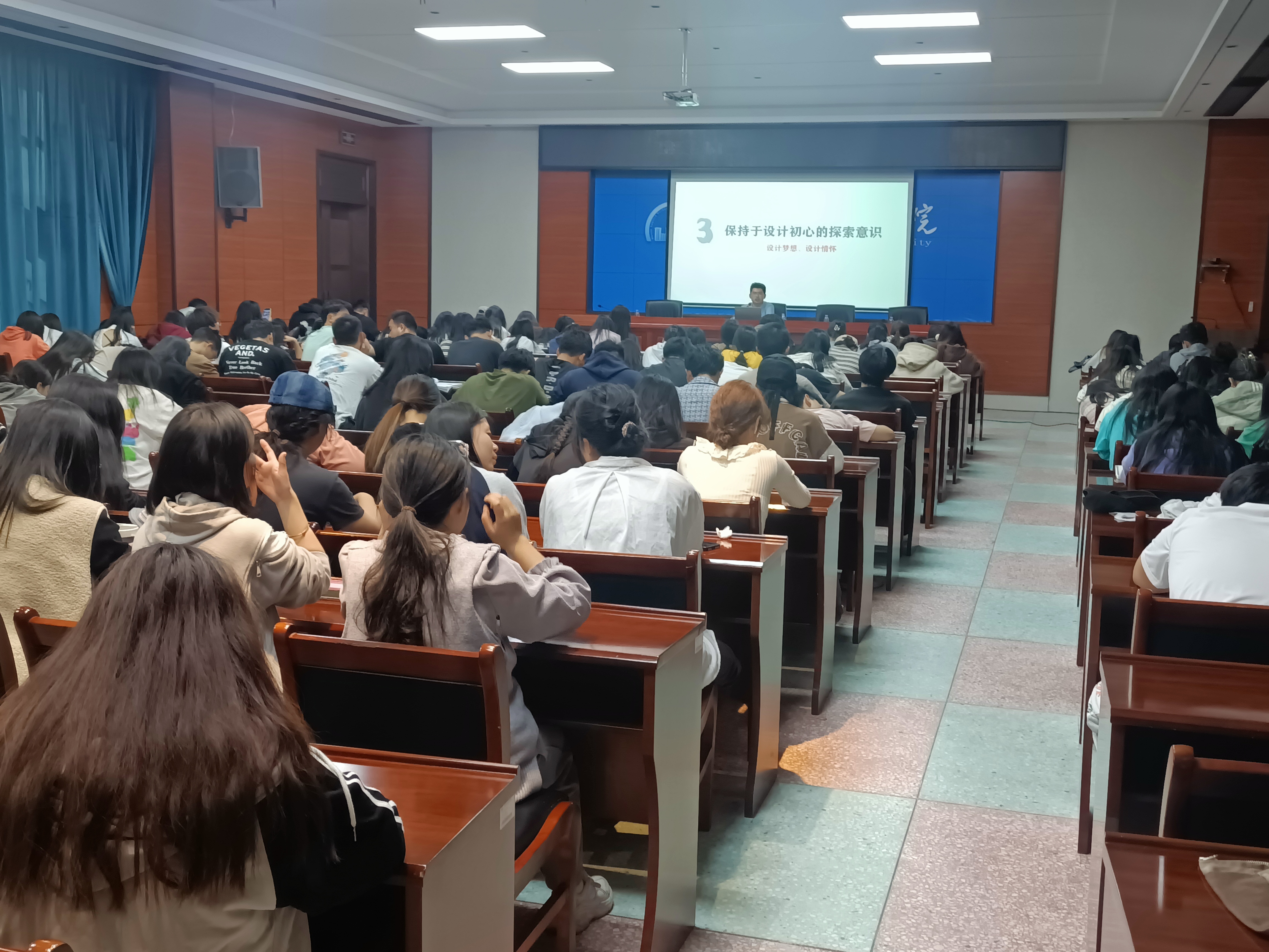 赵忠鼎副教授为设计艺术学院的学生们深入剖析了毕业设计应该如何选题,他指出毕业设计是对同学们四年学习的综合考核,是对设计的全面认识,也是从学校到社会的一个过渡。毕业设计选题一方面要关注于社会发展的问题意识,如:生态可持续性、社会老龄化、健康医疗、性别平等、弱势群体等;另一方面要立足于解决问题的市场意识,如:文化传播、非遗传承、服务地方等。除此之外,毕业设计还要保持于设计初心的探索意识,要心怀设计梦想,表达设计情怀。
