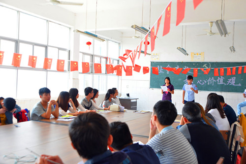 为了深入开展践行社会主义核心价值观教育活动,yl23455永利集团团总支经过精心准备,于2014年10月26日中午各班开展以“弘扬社会主义核心价值观”为主题的团会。经过各班的精心准备,我院各班级都围绕“弘扬社会主义核心价值观”这一主题表演了别出心裁的小品、诗歌朗诵等节目,尽显班级特色。