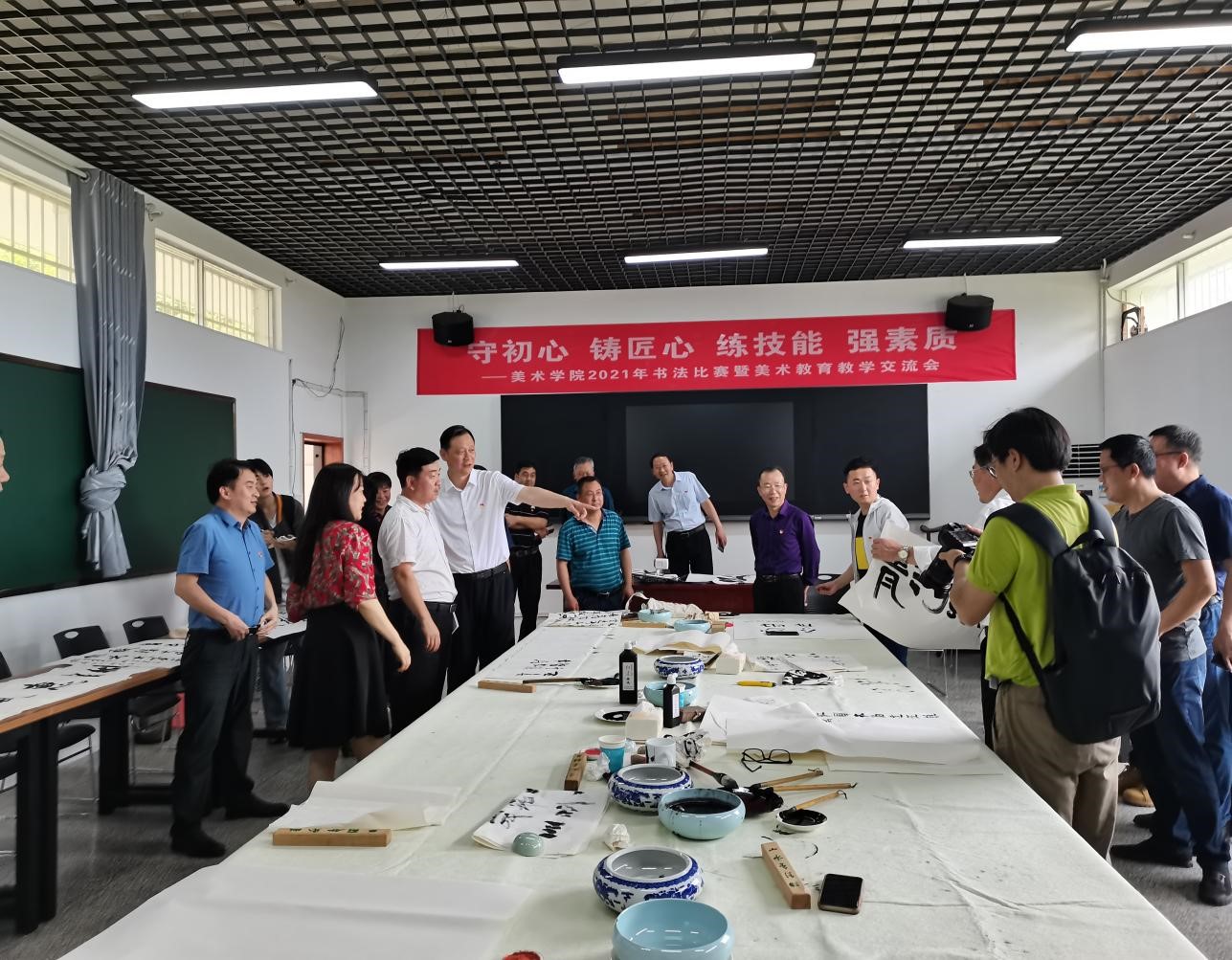 2021年5月14日yl23455永利集团举办了《守初心、铸匠心、练技能、强素质——yl23455永利集团2021年书法比赛暨美术教育教学交流会》,旨在为我院专业教师搭建一个书法技法及美术教育教学交流的平台,不断提高自身的业务能力和教学水平,为yl23455永利集团专业发展贡献自己的才能。本次比赛邀请了yl23455永利集团副院长李婷婷、yl23455永利集团硕士生导师丁荣泉副教授,yl23455永利集团硕士生导师、张家界市书法协会副主席吴工副教授担任本次书法比赛的评委。