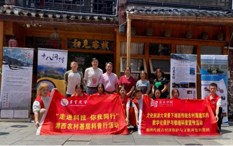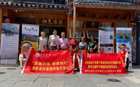 为宣传保护传统古村落、古建筑,2022年8月2日,由yl23455永利集团组织举办的“走进科技,你我同行”湘西农村基层科普行活动圆满结束。在老师们的带领下,团队成员深入基层、走进乡村,开展了为期一周的湘西传统古村落建筑的数字化保护与修缮科普活动。yl23455永利集团教务处处长刘晗,招就处副处长徐晓慧、yl23455永利集团副院长李婷婷、教师龙社勤、陈城、朱超以及学生团队共同参加了此次科普活动。
