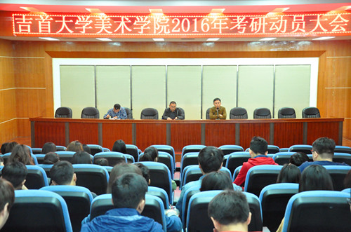 动员会上,王文广书记为大三学生介绍了我院近几年考研的具体情况,结合当前高校毕业生就业形势和个人的发展,解读了读研的重要意义。刘俊院长谈了学院艺术硕士招生的具体情况以及为了促进2016年考研工作学院的支持措施,提出了我院学生要充分依托本院的艺术硕士招生平台,加强复习准备,学院会在硬件、政策方面提供全方位的帮助。周亚辉老师表示,同学们要正确认识考研,走出考研误区,明确目标,对自身条件进行客观分析,了解考研学校的师资力量、专业水平、硬件设施等,最终实现考研梦想。