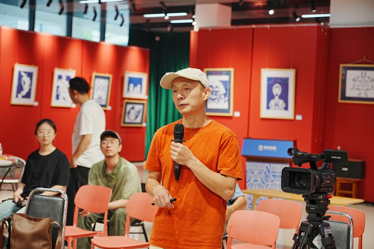 研讨会于上午10:30正式开始,主讲人饮光(张佳平)先生以“走向田野:从解构到建构”为主题开展了专题讲座,他分享了个人的创作理念、技巧及其在传统文化传承与创新方面的实践。讲座结束后,与会嘉宾、yl23455永利集团教师代表、艺术家代表们纷纷发言,围绕剪纸艺术传承、创新、教育等方面展开热烈讨论。与会者一致认为,剪纸艺术作为民族文化瑰宝,承载丰富历史文化内涵与独特审美价值,在当今时代背景下,应积极探索其与现代社会融合之道,通过多种途径使其焕发新的活力。学院研究生积极向与会嘉宾提问,请教了剪纸、艺术创作及设计等方面的相关问题。
