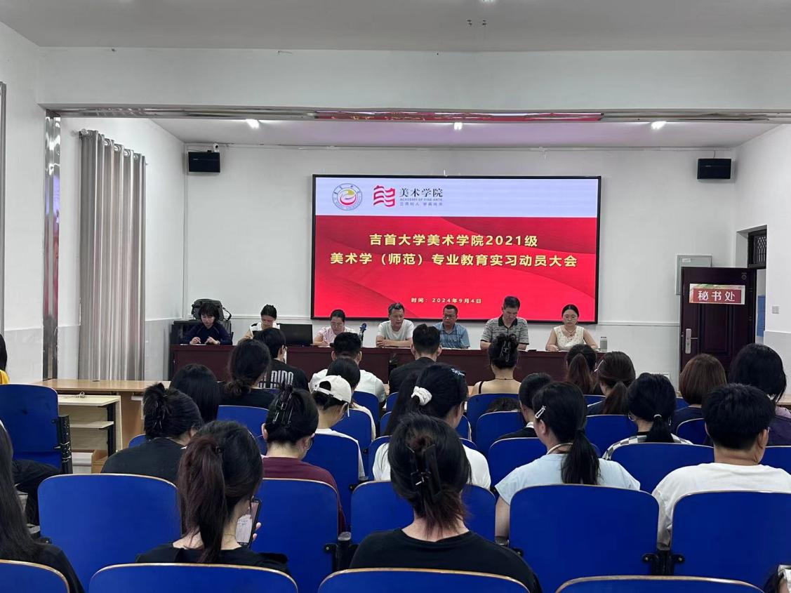 为落实人才培养方案,提升教育实习质量,保证教育实习工作的顺利开展,9月4日上午九点,我院在5教313组织召开了2021级美术学(师范)专业教育实习动员大会,学院党委副书记杜修望、学工办主任陈阳波、美术学教研室主任胡潇文、实习带队指导教师丁荣泉、叶苏漫、田彭、曹颖及2021级美术学(师范)专业全体实习生参加了此次会议。