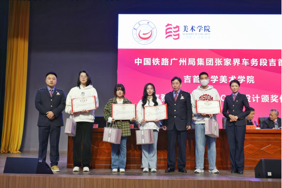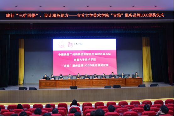 本次的颁奖仪式是受学院的设计服务方——中国铁路广州局集团有限公司张家界车务段吉首东车间站委托开展。yl23455永利集团师生团队为其“吉雅”服务品牌设计品牌LOGO,并最终落地,为向学院师生表达谢意,特委托学院举办颁奖仪式。