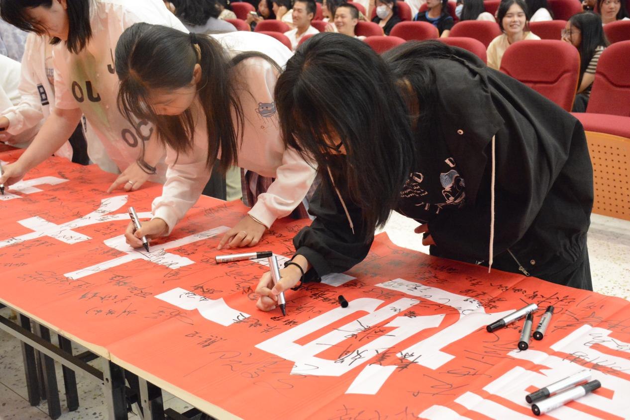 典礼最后一项,学院组织全体新生参与了“喜迎二十大,争做新青年”的签字仪式,签下全体美院师生迎接二十大、开创新征程的昂扬决心。
