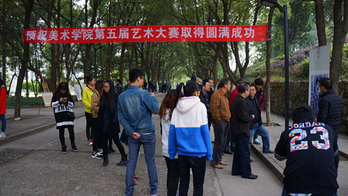 2014年11月10日上午十点,气候微寒,在yl23455永利集团张家界校区林荫道上,yl23455永利集团第五届艺术作品展隆重开展了。