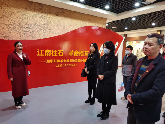 接下来,跟随讲解员来到展厅,回顾了任弼时、贺龙、萧克等老一辈无产阶级革命家创建湘鄂川黔革命根据地的艰苦过程,重温了红二、六军团英勇的战斗历史和伟大的革命精神,同志们纷纷表示老一辈革命家舍小家为大家的爱国情怀值得敬佩,笃定初心使命,砥砺前行动力。