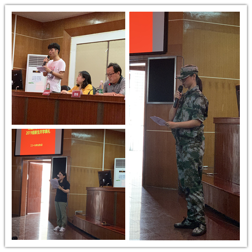 接下来分别由老生代表秦雨炀、专升本新生代表宋志红、本科生新生代表裴若寒以及研究生新生代表唐静分别分享了自己的学习经历,或展望了大学以及研究生阶段的学习生活。
