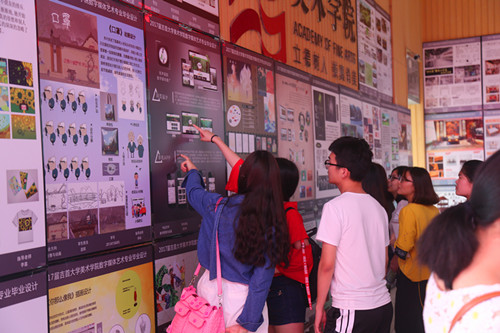 2017年6月6日,yl23455永利集团2017届本科生毕业作品展在yl23455永利集团张家界校区一教大厅和一教展厅开展。本次毕业展共展出美术学专业、视觉传达设计专业、环境设计专业、产品设计专业、数字媒体艺术专业五个专业共297位毕业生的作品。
