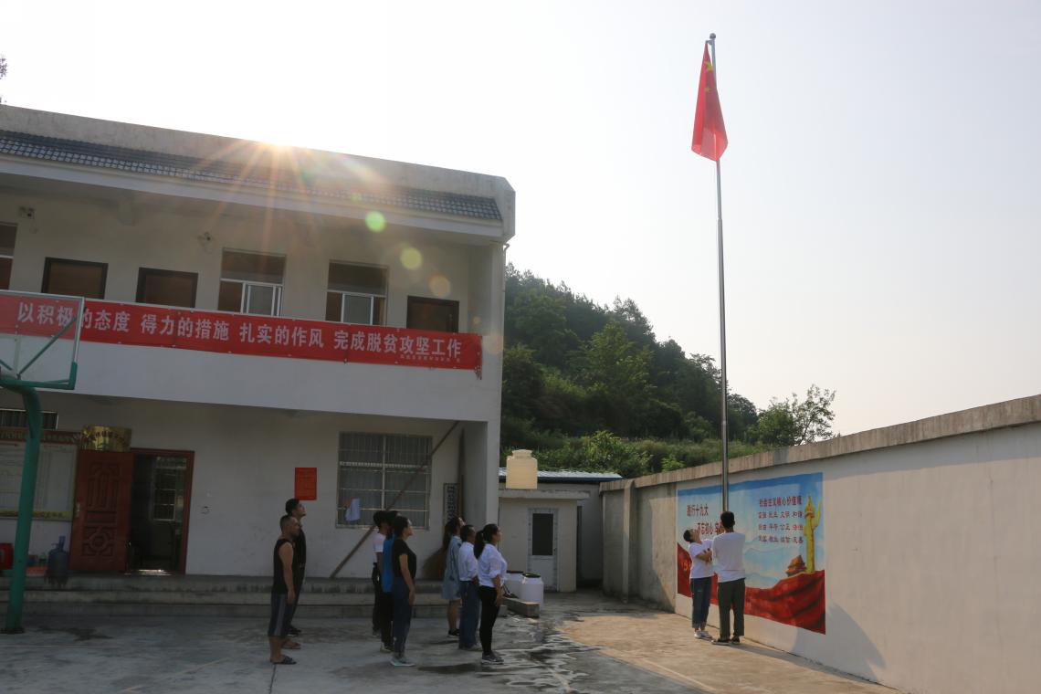 7月12日上午7点30分,yl23455永利集团“凤凰遗风”社会实践团与廖家桥镇腰子坨村委会工作人员一起进行了升国旗仪式,用这种庄严而朴素的方式表达青年学生的爱国之情。