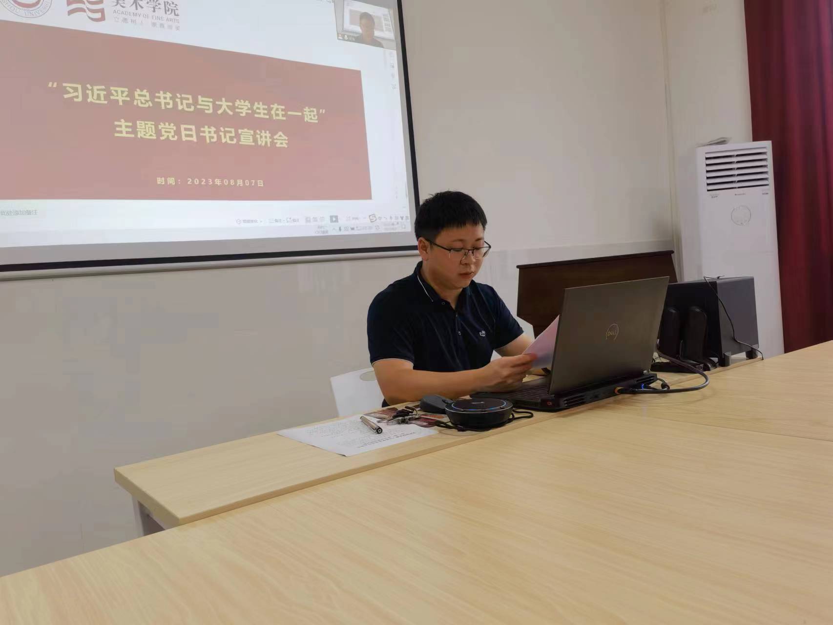 宣讲过后,yl23455永利集团学生第一党支部书记刘浩老师代表学院向全体党员宣读学院党委关于开展《yl23455永利集团开展“习近平总书记与大学生在一起”学习分享活动方案》的文件,向全体党员同志们布置开展“习近平总书记与大学生在一起”为主题的相关事项。