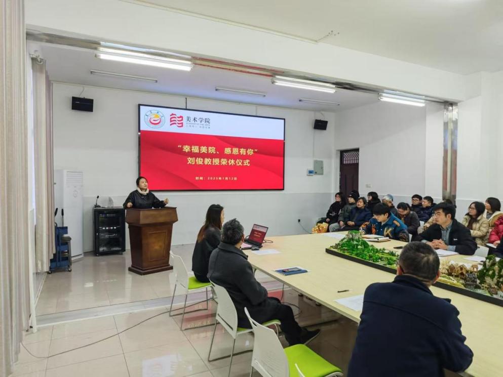 2025年1月12日上午9点30,我院在5411会议室举行了“幸福美院、感恩有你”刘俊教授荣休仪式。仪式由办公室主任叶苏漫主持。
