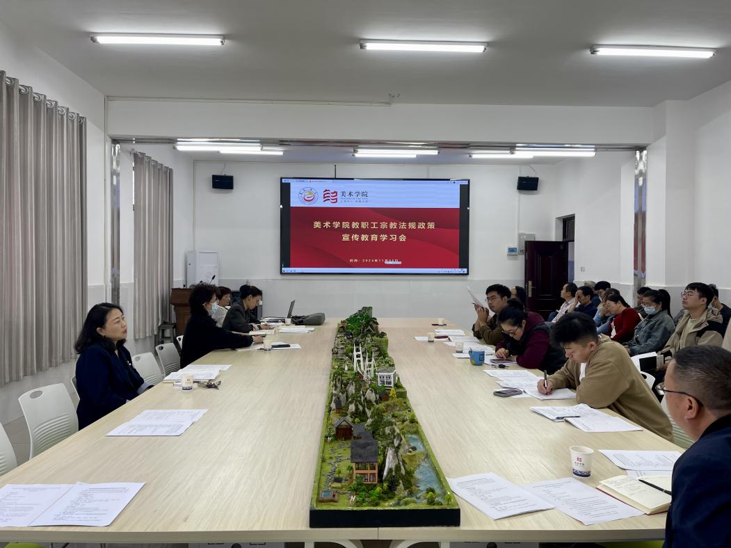 龙社勤副院长带领大家首先对相关法律法规进行了详细学习,重点解读了《中华人民共和国宪法》第三十六条、《中华人民共和国教育法》第八条、《宗教事务条例》第四十四条、第七十条,以及《普通高等学校学生管理规定》第四十三条。以上文件明确规定了“任何组织和个人不得在学校进行宗教活动。”“禁止在宗教院校以外的学校及其他教育机构传教、举行宗教活动、成立宗教组织、设立宗教活动场所。”“教育活动必须符合国家和社会公共利益。”