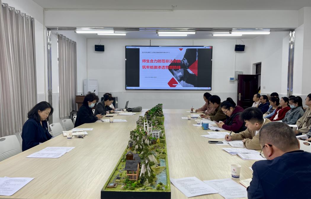 为加强民族宗教政策法规的宣传教育,担起抵御和防范校园传教渗透第一责任,2024年11月6日上午10点,yl23455永利集团全体教职工在5411会议室,进行了“师生合力防范非法传教,筑牢抵御渗透思想防线”主题党课学习。本次学习由副院长龙社勤教授主讲。