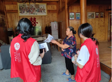 科普团成员深入夯沙村进行走访考察,并向当地居民进行保护传统古村落建筑相关知识的科普宣传,将团队成员制作的湘西少数民族地区古建筑结构科普宣传手册分发到当地居民的手中。