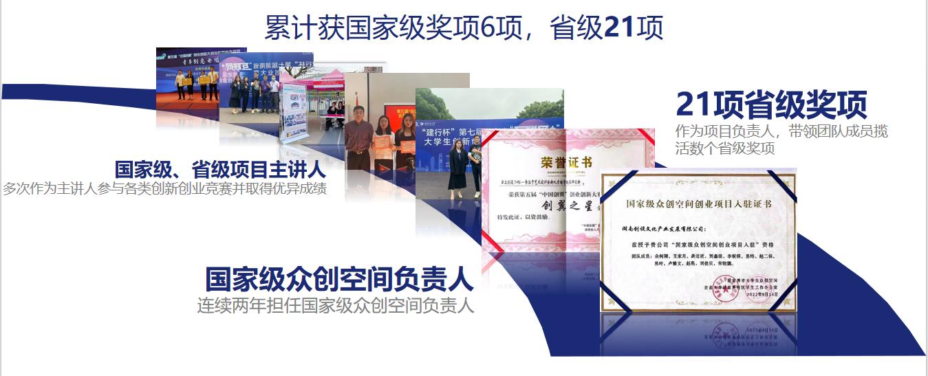 在大学期间学好专业知识固然重要,但更重要的是如何利用好自己所学付诸实践。大学是一个丰富多彩的地方,这个平台提供给我们太多可以发挥拳脚的地方——竞赛,便是其中一个。在相关学科竞赛中你可以收获更深层次的专业知识、实践经验,也可以收获一大批奋斗的伙伴们。大学四年,余柯颖运用自身专业知识参加各类创新创业大赛、专业设计大赛等,总共获得6项国家级奖项、21项省级奖项。同时参加互联网+大学生创新创业大赛连续两年获得国家级铜奖。