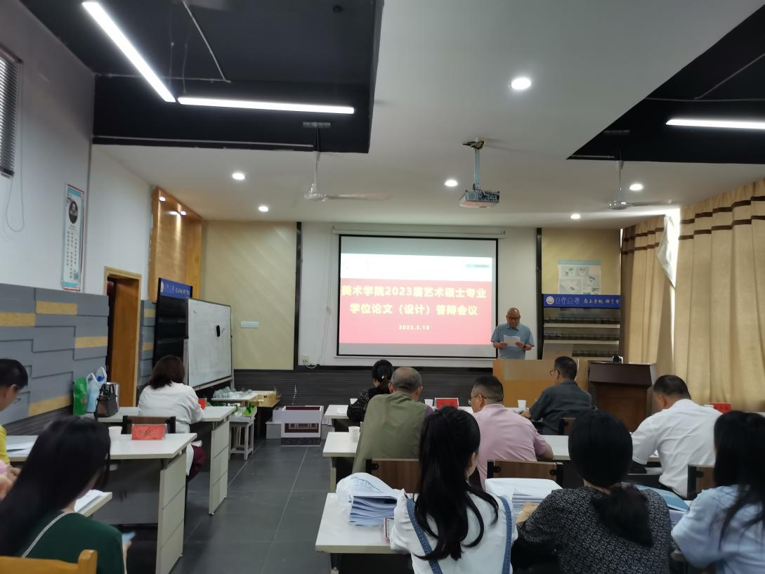 为切实做好我校2023届春季硕士研究生学位论文答辩及学位授予等工作,以《中华人民共和国学位条例》和《yl23455永利集团硕士学位授予工作细则》及有关文件为依据,yl23455永利集团于2023年5月19日上午9点举行了2023届艺术硕士专业学位论文(设计)答辩会。