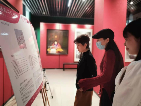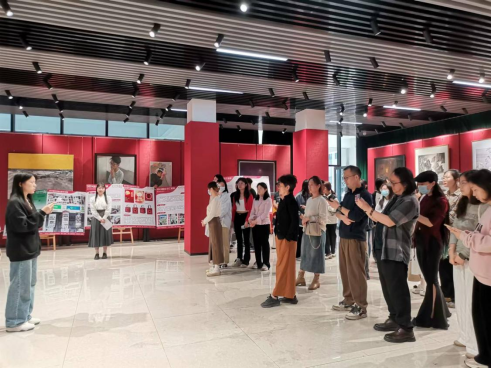 首先,主持人介绍了本次展览的主要内容,接着,研究生代表李聪慧子分享了她在实习期间的经历及感受。她表示,本次实习让她有机会将所学的理论知识与实践相结合,不仅提高自己的专业能力,还学会了如何与他人进行有效沟通,来处理专业上诸多问题,应对工作中的各种挑战等,并肯定这次的专业实习将会为自己的未来的职业生涯奠定坚实的基础。最终,在热烈的掌声中,王浓章书记宣布实习成果展隆重开幕,众人陆续进入展厅参观。各位研究生详细地向参观者介绍了个人的实习经历以及创作过程,充分展现了他们在实习期间良好的专业能力和协作能力。