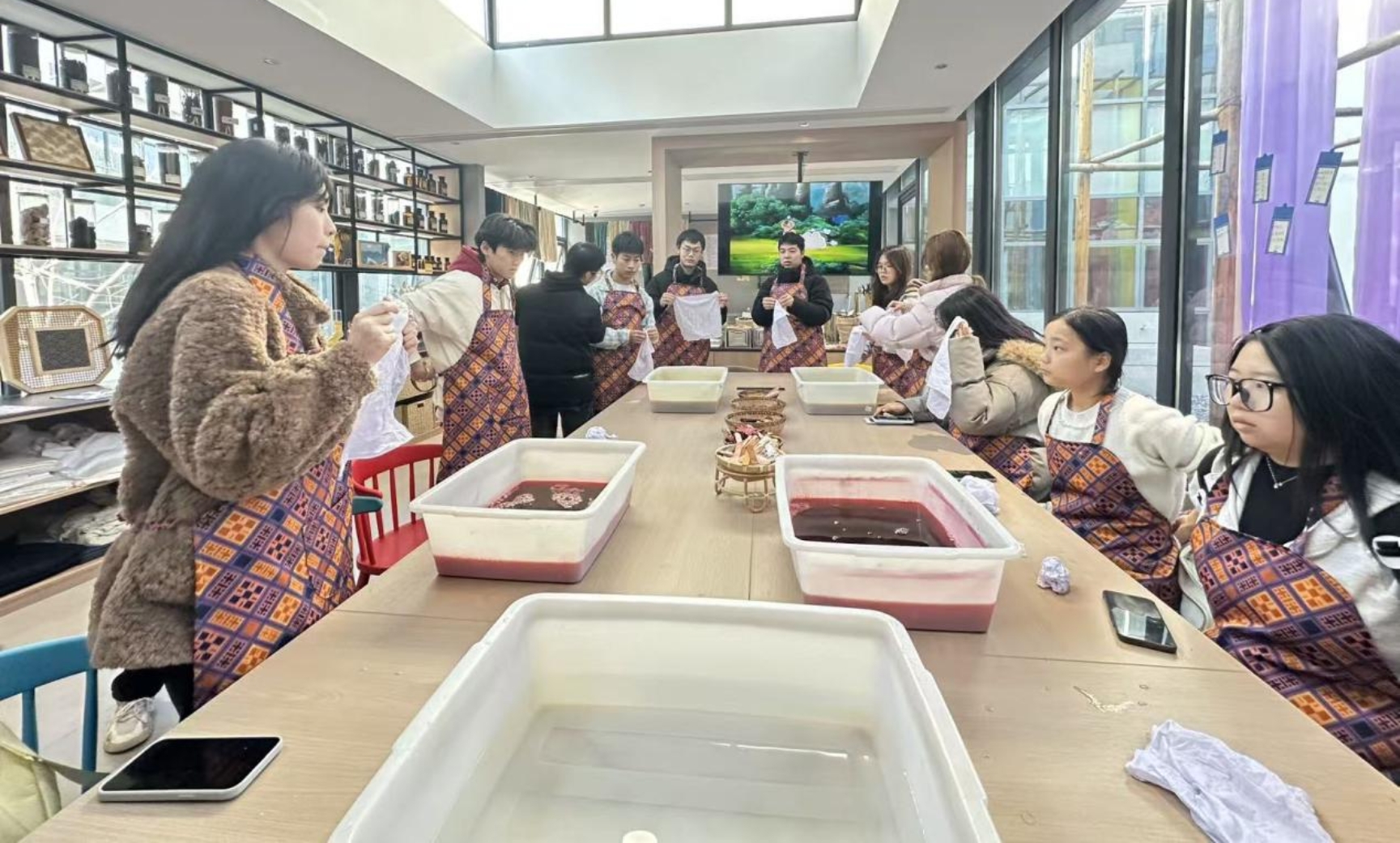 为深化对非遗文化的理解,提升专业实践能力,1月13日,yl23455永利集团组织本科生、研究生代表赴张家界“乖幺妹”土家织锦实践基地开展非遗体验活动。同学们先后沉浸式体验土家织锦技艺、参观实践基地展馆,并进行植物扎染实践,再在指尖与针线、染料的互动中,感受土家族传统技艺的独特魅力。