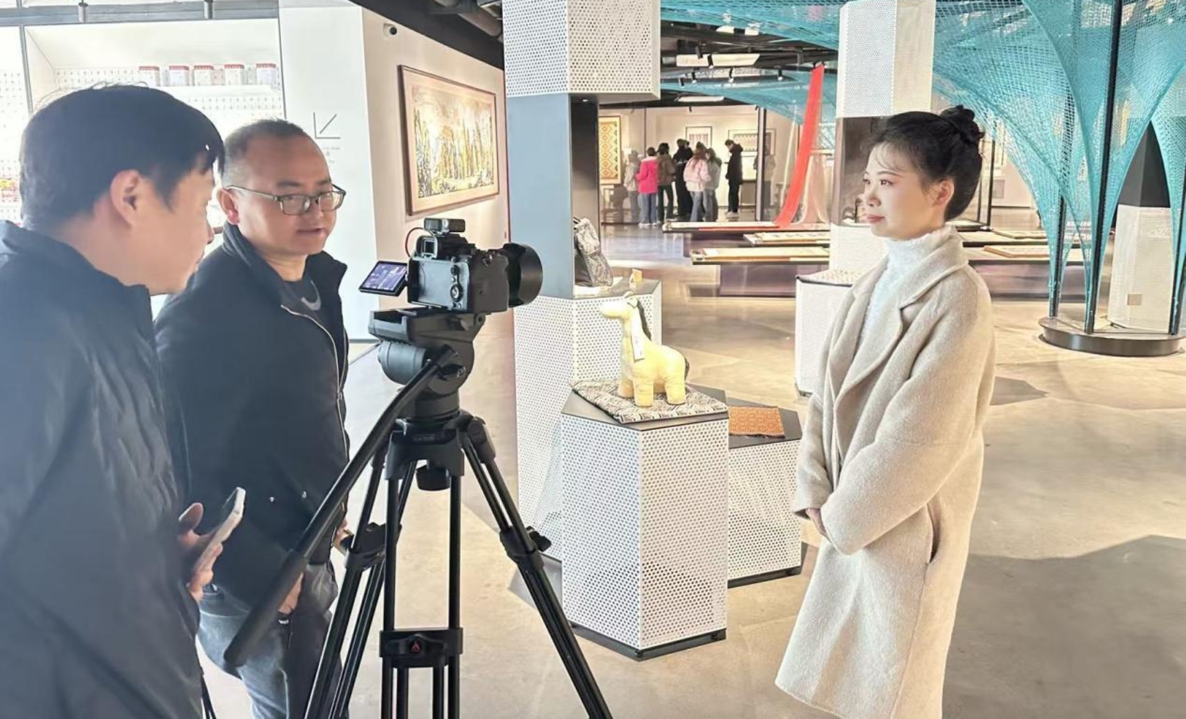 活动期间,yl23455永利集团研究生高彩琴和张丝丝接受了现场采访。谈及土家织锦初体验的感受,高彩琴同学表示:“土家织锦不仅是一门技艺,更是土家族文化的载体。在操作织机的过程中,我能清晰感受到千年技艺的传承脉络,那些精美的纹样里藏着土家族的历史故事和对自然的敬畏。作为设计专业的学生,我们有责任将这种传统美学融入现代创作,让非遗技艺在新时代焕发活力。”