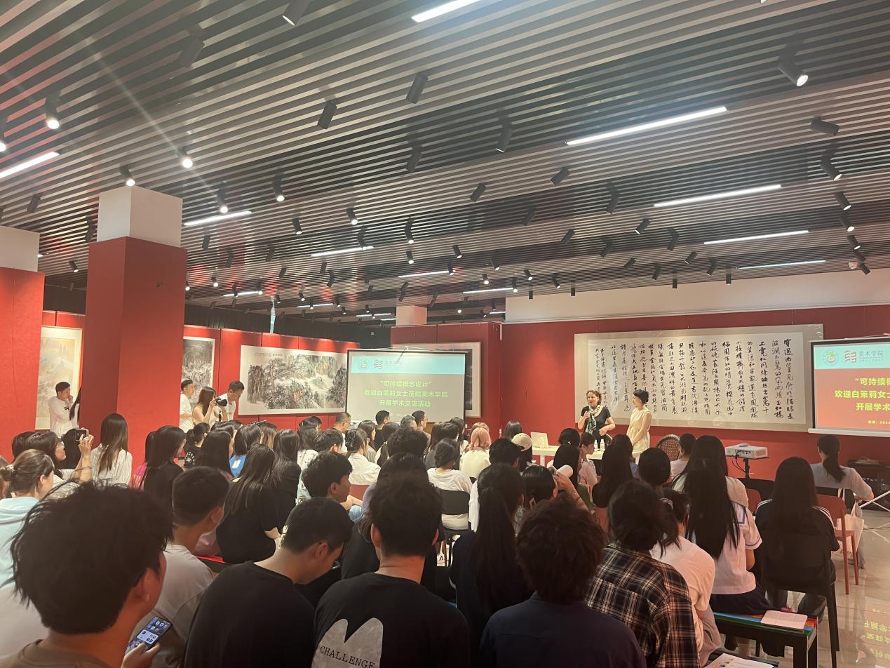 2024年5月27日下午,奥地利艺术家JASMIN LADENHAUFEN(中文名:白茉莉)在yl23455永利集团张家界校区第五教学楼美育空间开展了“可持续概念设计”学术讲座,讲座由yl23455永利集团向二萍博士主持,yl23455永利集团设计类专业部分师生代表参加了本次活动。