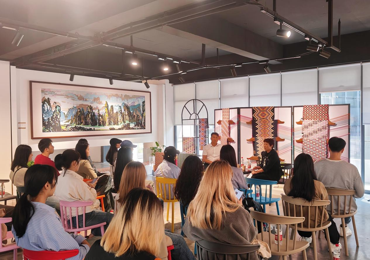 2023年10月16日,yl23455永利集团2022级艺术硕士研究生前往乖幺妹土家织锦有限公司,邀请公司董事长、“乖幺妹”土家织锦品牌创始人丁世举,针对《职业伦理与职业素养》课程进行了一次现场授课的活动。