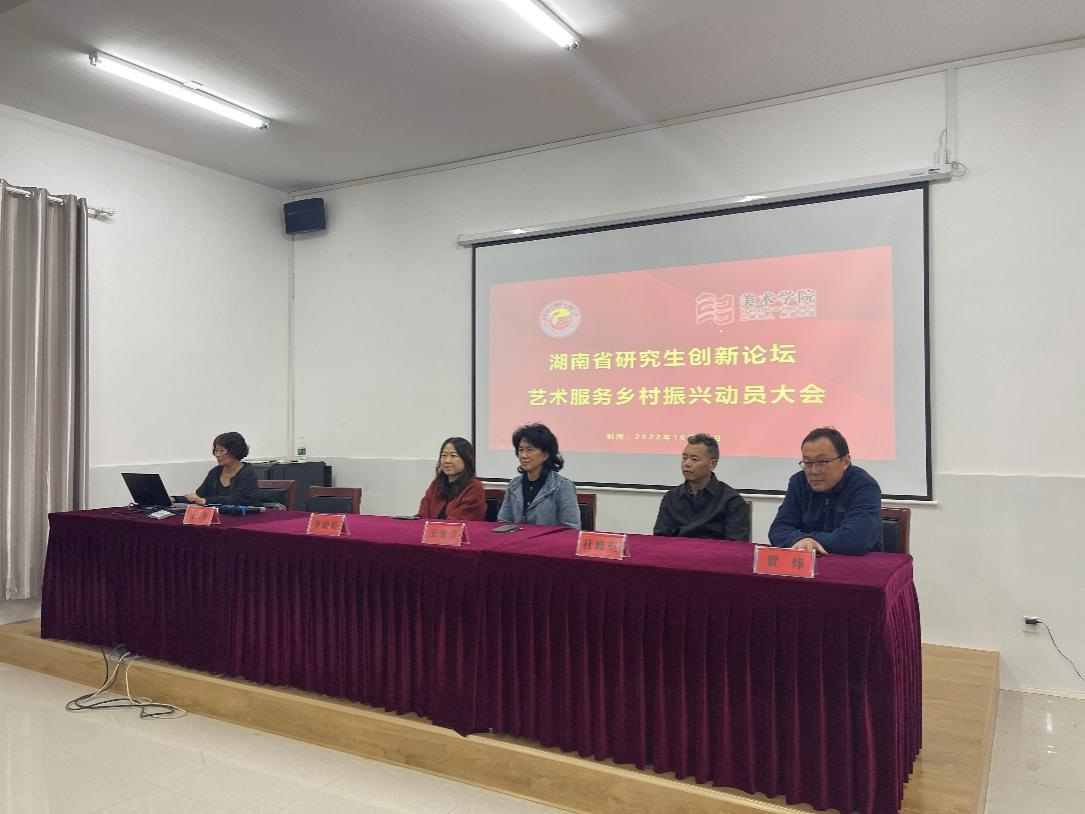 2022年10月26日下午3点,yl23455永利集团在5W313召开了《湖南省研究生创新论坛—艺术服务乡村振兴》分论坛动员大会。会议由研究生办主任龙社勤主持,yl23455永利集团党委书记王浓章、院长李婷婷、副院长贺炜、副书记杜修望、各专业导师以及全体研究生参加了此次会议。